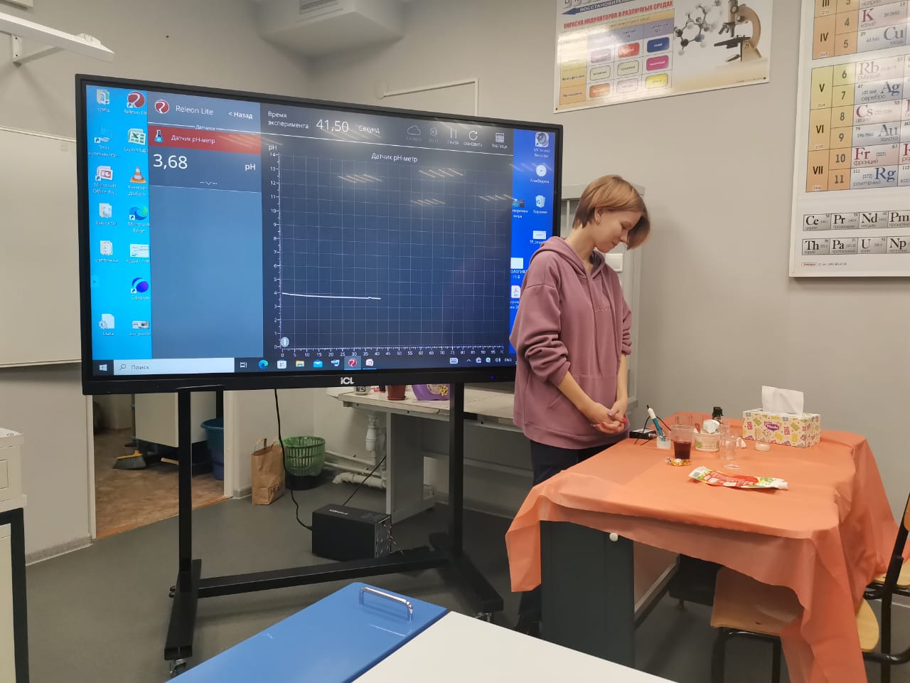 Е.А. Панченко, учитель химии ГБОУ НАО «СШ № 4 г. Нарьян-Мара с углубленным изучением отдельных предметов», рассказала о возможностях применения оборудования образовательного центра «Точка роста» для развития познавательного интереса обучающихся к изучению химии.